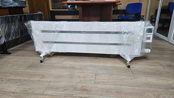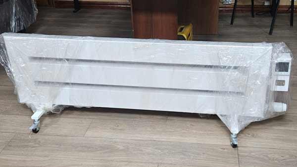 Цей обігрівач на акумуляторі виконаний у трисекційному варіанті. Таке рішення збільшує площу тепловіддачі та забезпечує більш рівномірний розподіл тепла у приміщенні. Секційна конструкція також позитивно впливає на інерційність системи – тепло зберігається довше навіть після вимкнення живлення.